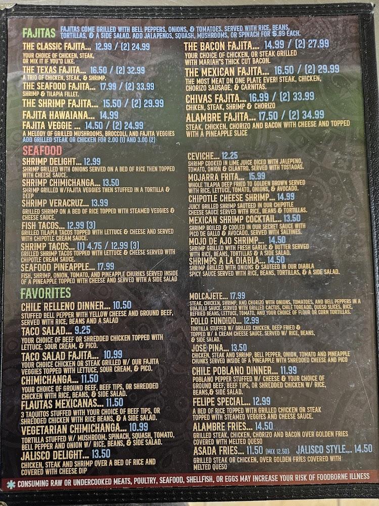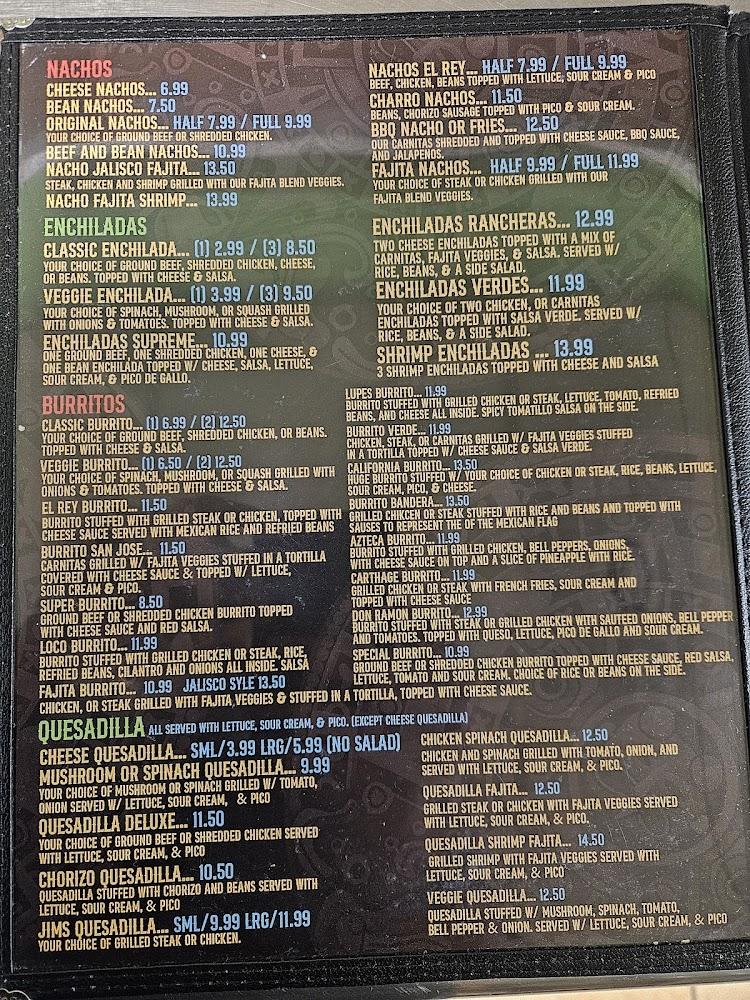 Signature items like the Molcajete and Shrimp Veracruz showcase traditional Mexican cooking. The menu also offers a variety of vegetarian and kid-friendly options, ensuring everyone can find a favorite.